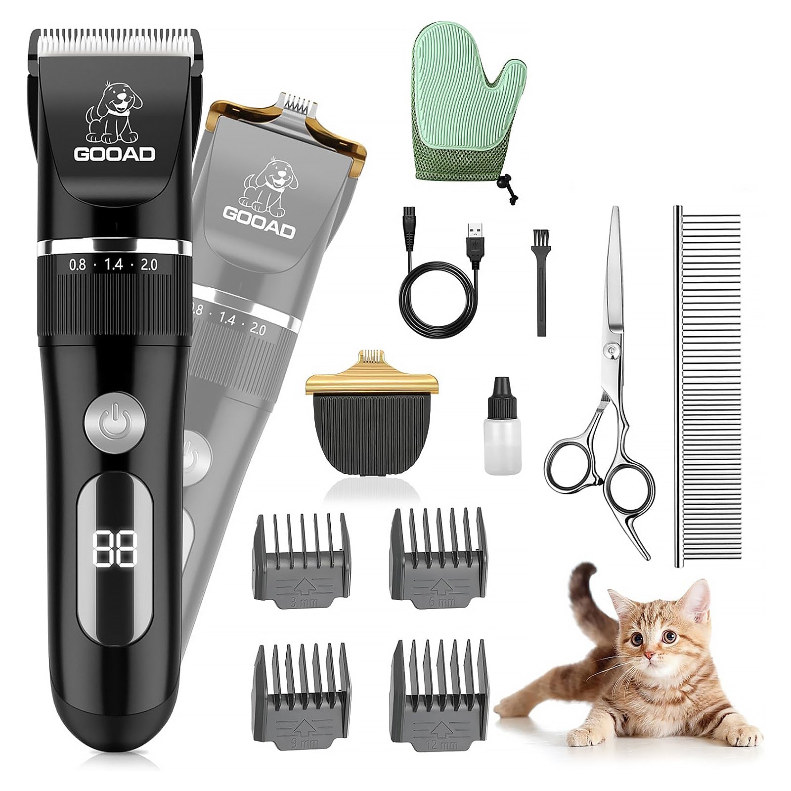 Gooad Cat Grooming Kit, Cat Clippers for Matted Hair, Cordless Cat Shaver for Long Hair, Low Noise Paw Trimmer, Cat Hair Trimmer for Grooming,Quiet Pet Hair Clippers Tools for Cats Dogs (Black)